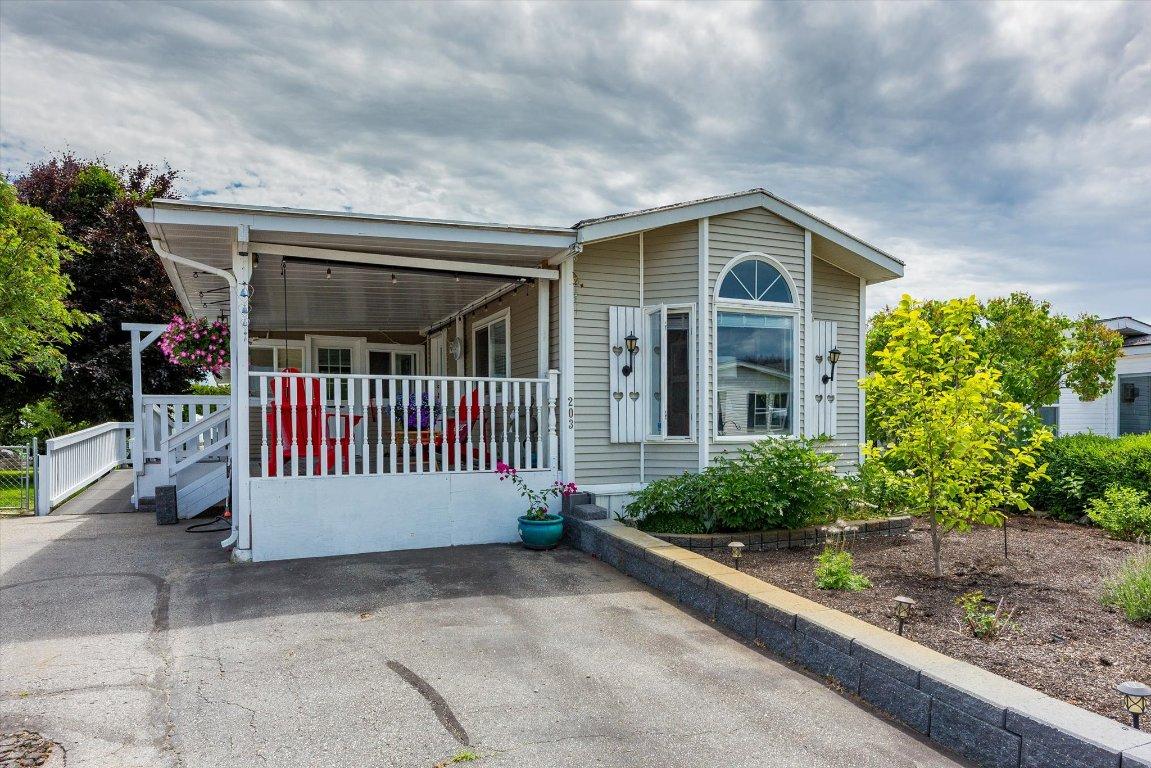 3 bedrooms, 3 bathrooms. Designed for wheelchair accessibility. Every detail has been attended to in this beautifully renovated and well-maintained home situated in the 55+ area of the park. Simply move in and appreciate the airy, skylit open layout. Unwind and relish the seclusion on your south-facing back sundeck or the north-facing covered tiled deck. It includes a remote-controlled awning for those moments when you want a break from the sun. The yard is meticulously cared for and fully enclosed. This is truly a MUST SEE!
